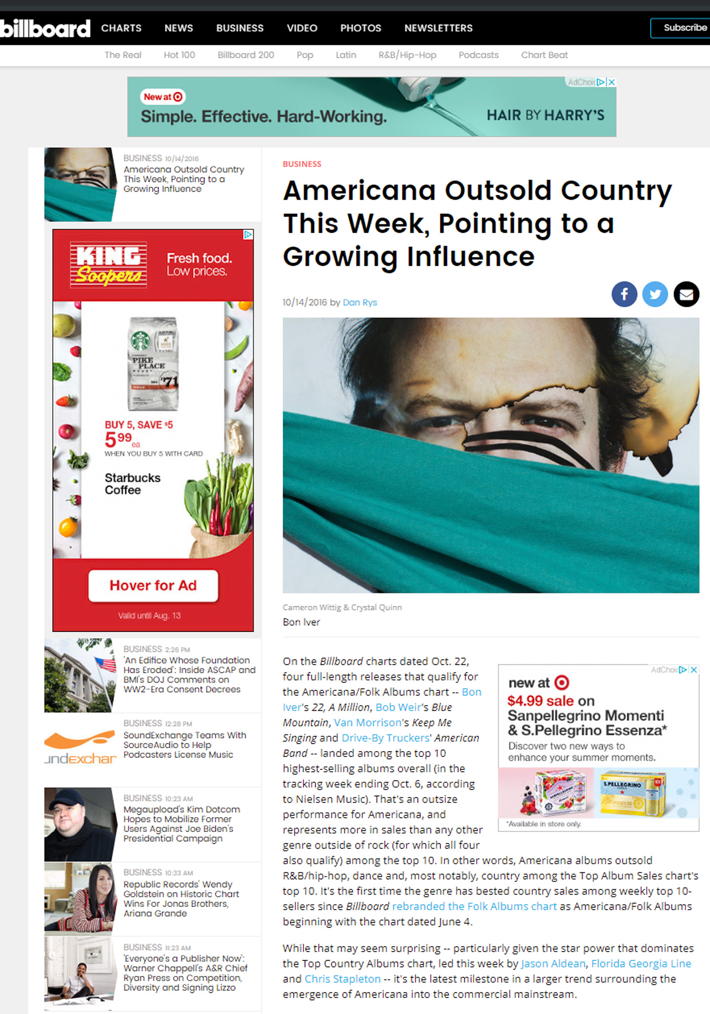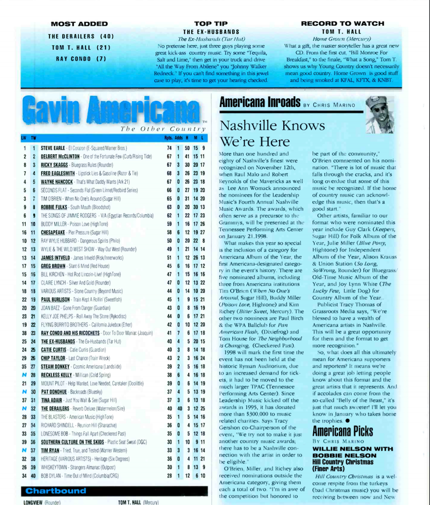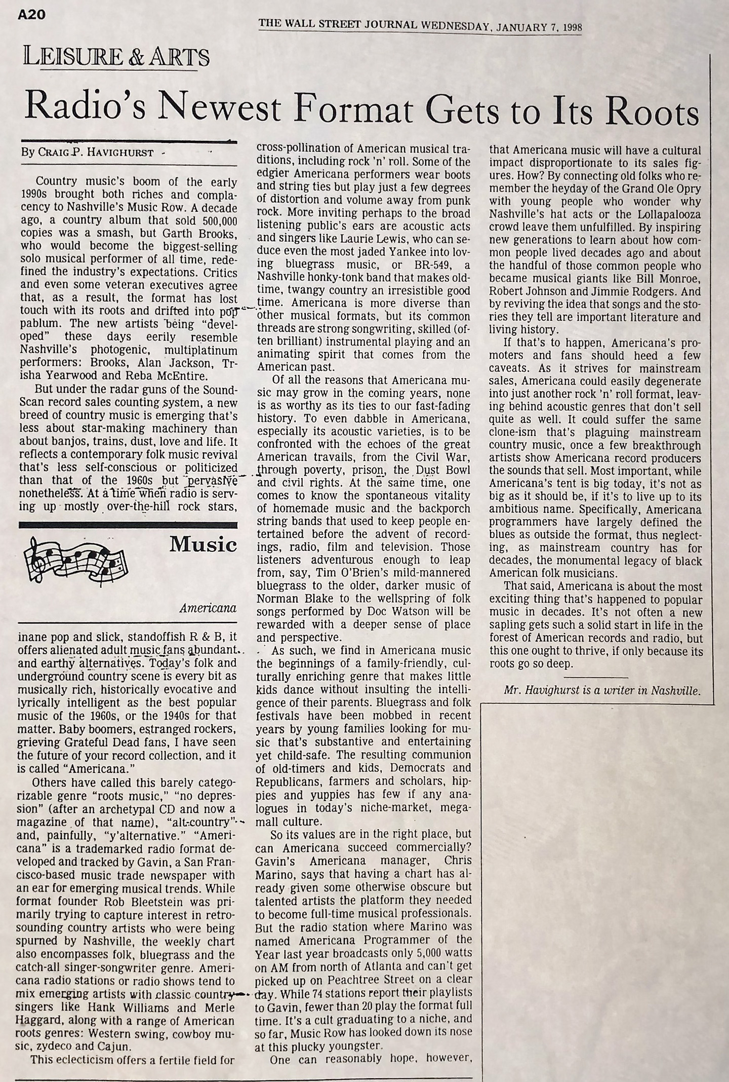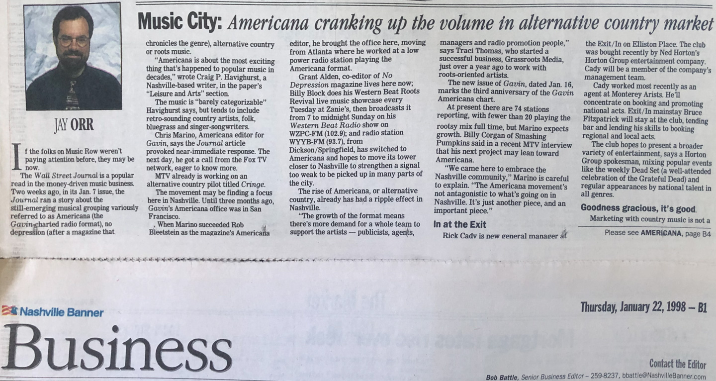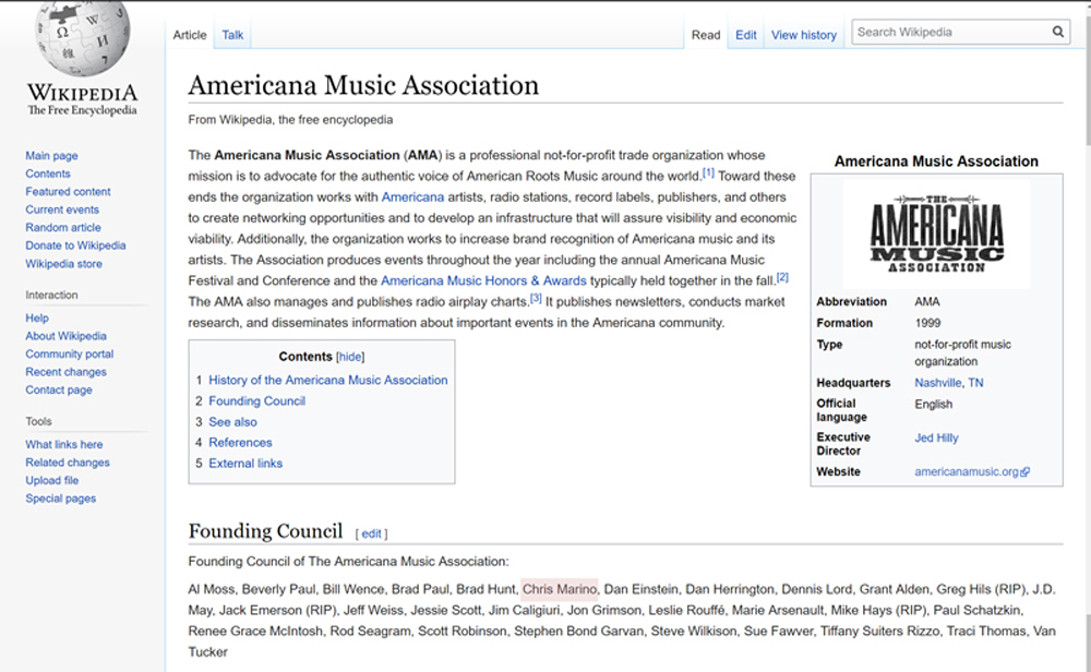 (Marino also won “Americana Programmer of the Year.”) Dubbed an “Evangelist for the Format” by the New York Times, Marino became a sought-after contributor to organizations and media outlets, including NARAS (National Academy of Recording Arts and Science), the CMA, CMT, Billboard and Rolling Stone. Marino is a member of the "Founding Council" for The Americana Music Association.
